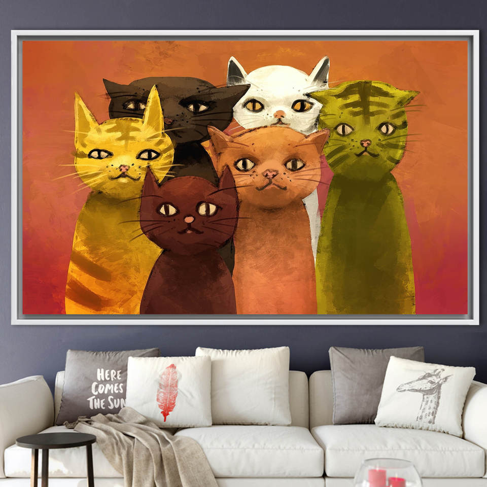 ผ้าใบพิมพ์ลาย: โปสเตอร์แมวแบบนามธรรม ศิลปะติดผนังแนวสัตว์สมัยใหม่ 1P:กรอบสีขาว