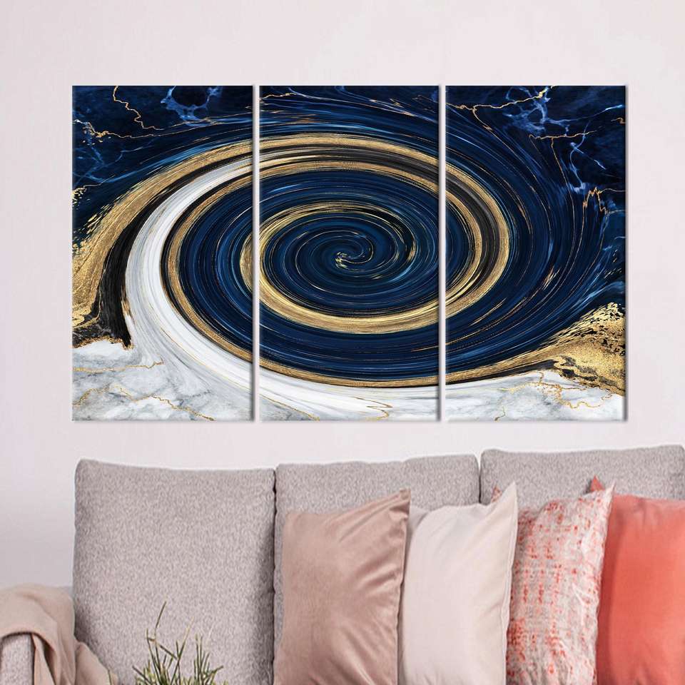 ผ้าใบพิมพ์ลาย: ศิลปะติดผนังลายหินอ่อนแบบนามธรรม ดีไซน์สีทองหรูหรา 3P: ห่อหุ้มแบบแกลเลอรี่