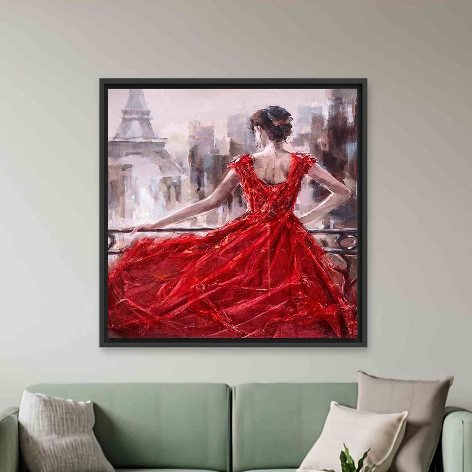 ผ้าใบพิมพ์ลาย: ศิลปะนามธรรมของผู้หญิงในปารีสสมัยใหม่ ตกแต่งผนังสีแดง กรอบสีดำ