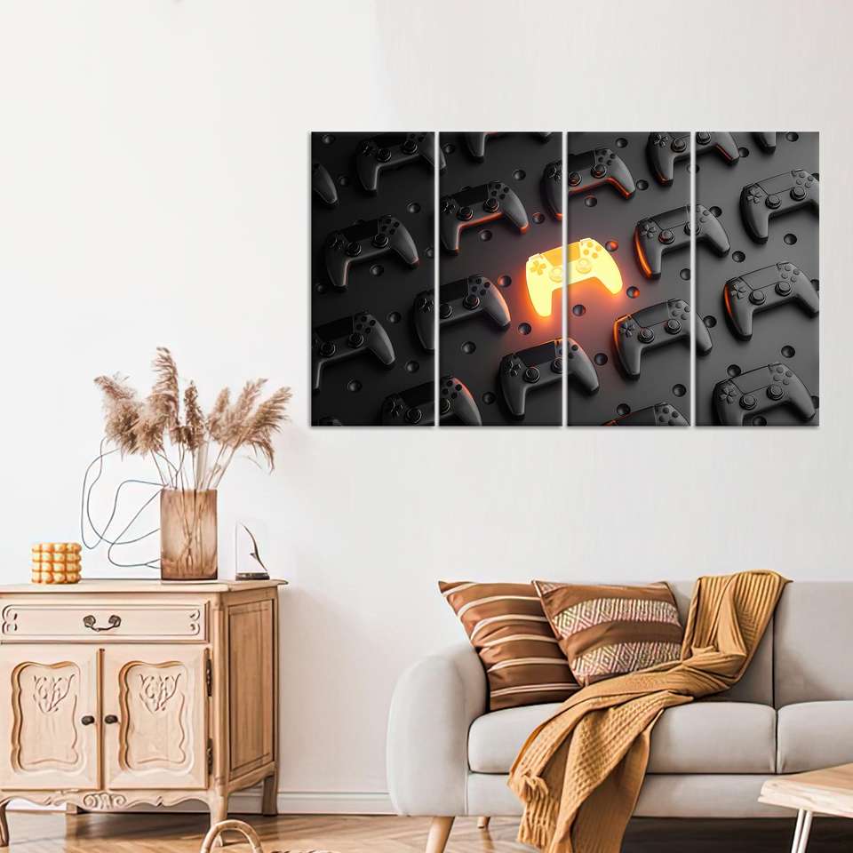 ภาพพิมพ์บนผ้าใบ: ของตกแต่งห้องเกมเมอร์รูปคอนโทรลเลอร์เกม 3 มิติ ชุดผ้าใบ 4 ชิ้น