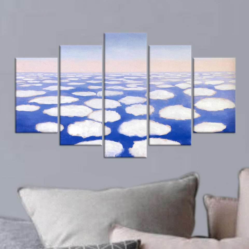 ภาพพิมพ์บนผ้าใบ ศิลปะเหนือจริง ท้องฟ้าที่มีเมฆลอย สำหรับตกแต่งบ้านสมัยใหม่ ชุดผ้าใบ 5 ชิ้น