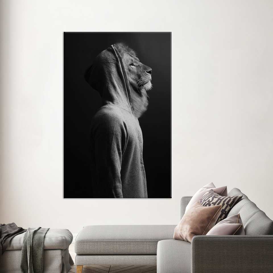 งานศิลปะบนผ้าใบพิมพ์ลาย: ของตกแต่งสไตล์ลอฟท์แบบนามธรรมพร้อมหัวสิงโต ห่อหุ้มอย่างดี