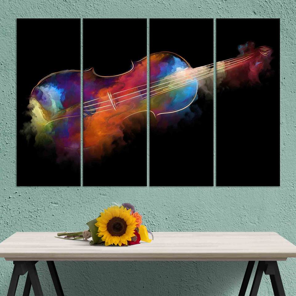 งานศิลปะบนผ้าใบพิมพ์ลาย: ของขวัญดนตรีซิมโฟนีไวโอลินแบบนามธรรม ชุดผ้าใบ 4 ชิ้น