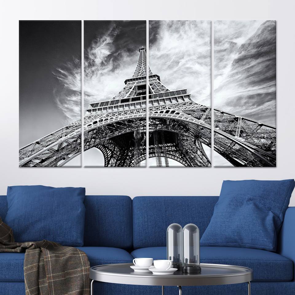 Printed Canvas Artwork: Eiffel Tower Paris Landscape Decor,4P Wrapped Canvas