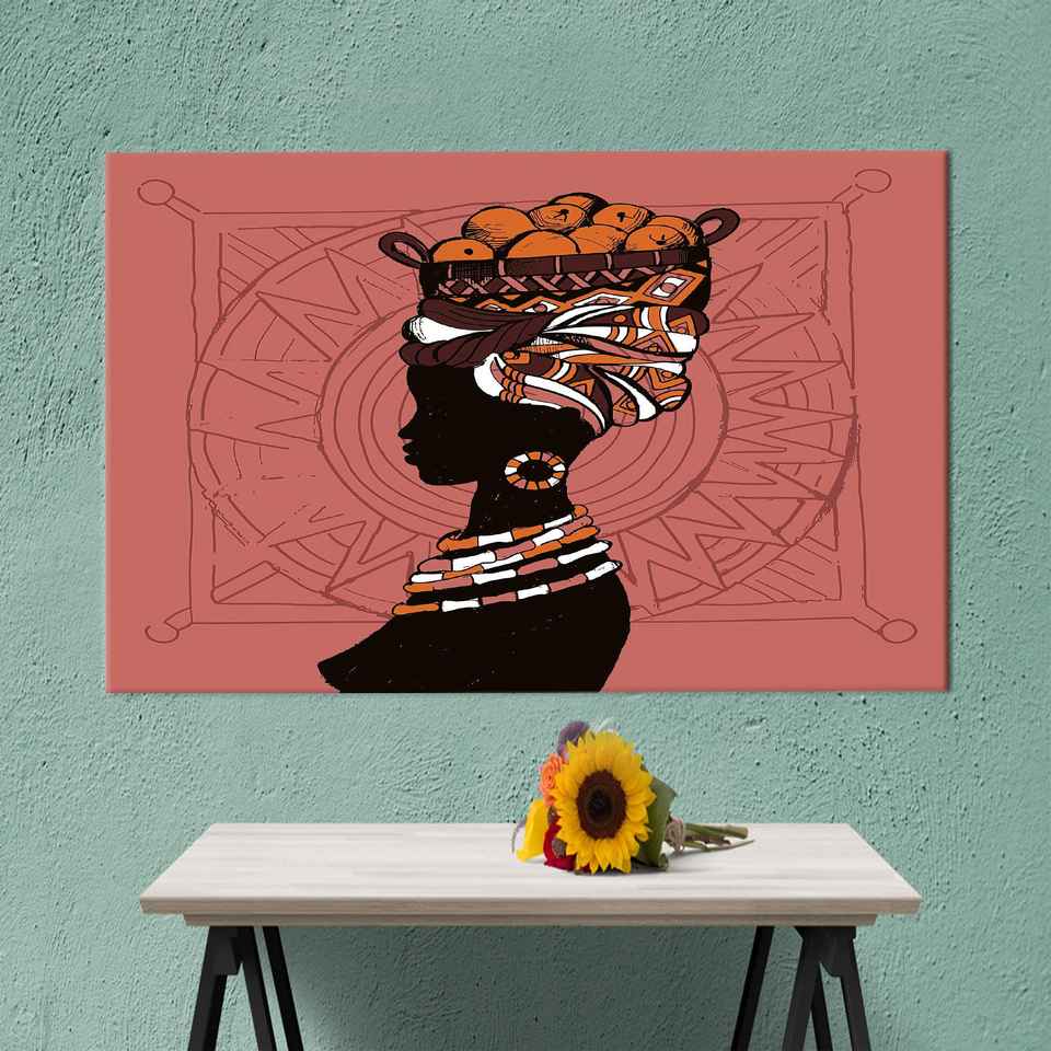 งานศิลปะบนผ้าใบพิมพ์ลาย: ผู้หญิงแอฟริกันที่สง่างามพร้อมตะกร้า,1P:ห่อหุ้มอย่างดี