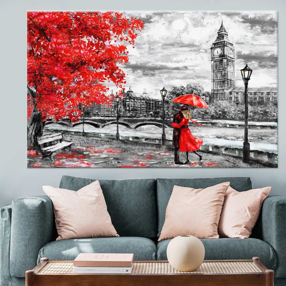 งานศิลปะบนผ้าใบพิมพ์ลาย: ภาพทิวทัศน์ร่มสีแดงอันงดงาม,1P:ห่อหุ้มอย่างดี