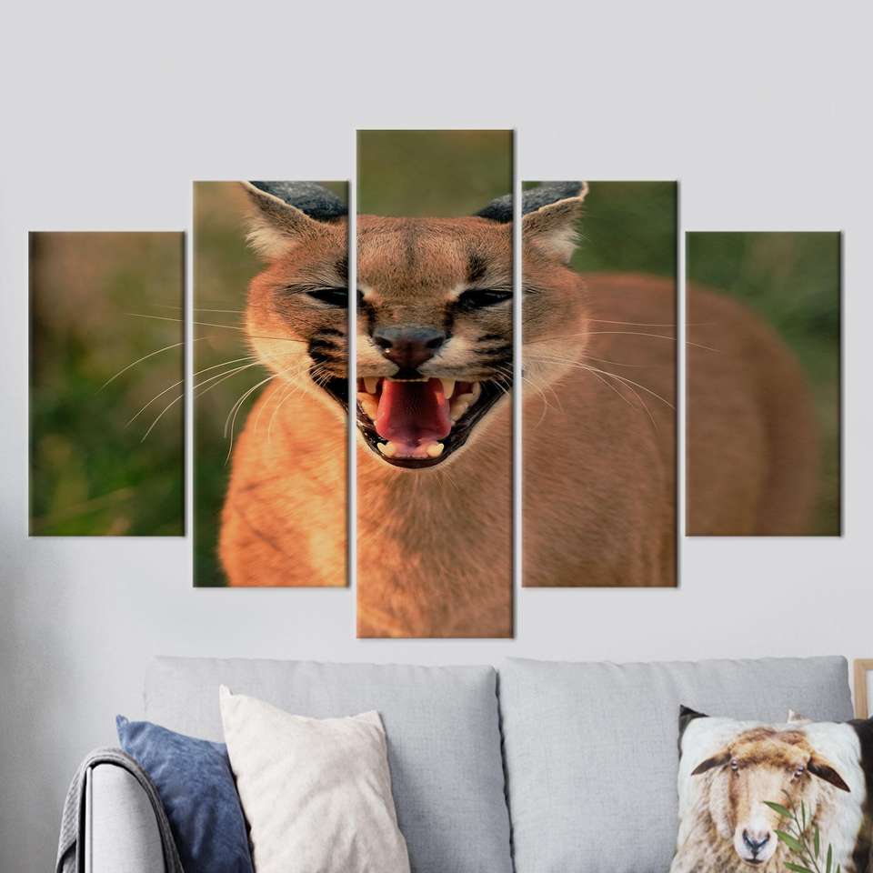 งานศิลปะบนผ้าใบพิมพ์ลาย: ภาพแมวป่าสุดหรูสำหรับตกแต่งผนังสไตล์โมเดิร์น, ชุด 5 ชิ้น: ภาพพิมพ์แบบห่อขอบ