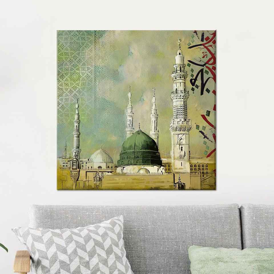 งานศิลปะบนผ้าใบพิมพ์ลาย: ฉากมัสยิดศาสดา ตกแต่งบ้านอย่างหรูหรา ห่อหุ้มอย่างดี