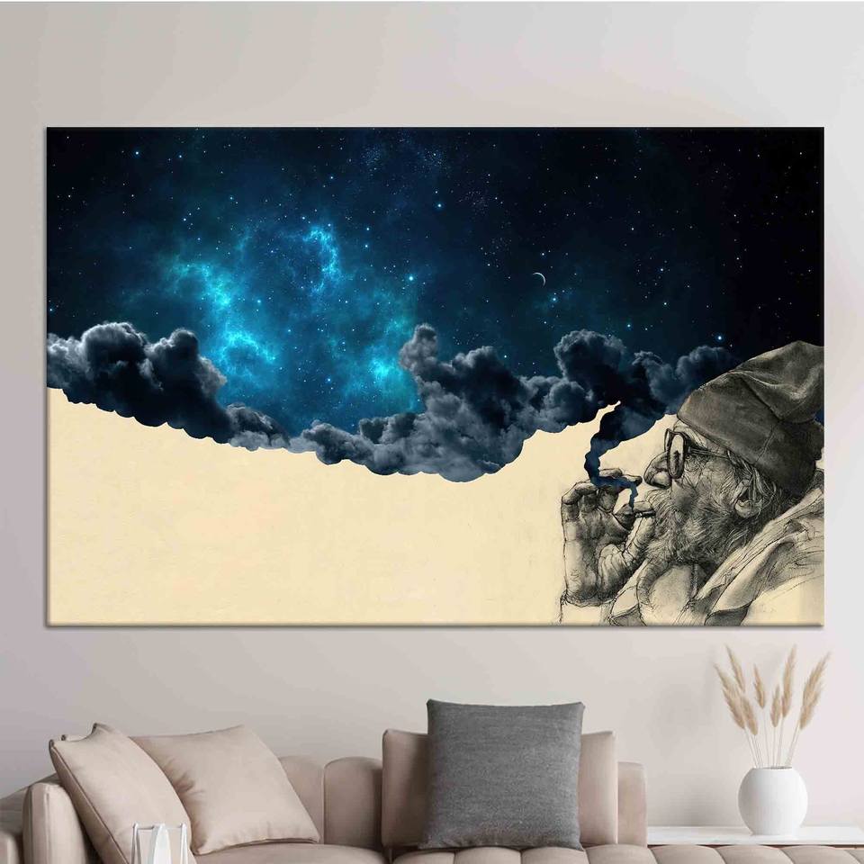 งานศิลปะบนผ้าใบพิมพ์ลาย: ชายชราสูบบุหรี่ - ของตกแต่งผนังสมัยใหม่, ผ้าใบหุ้ม