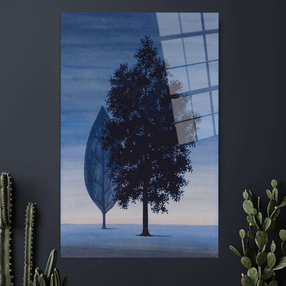 งานศิลปะบนผ้าใบพิมพ์ลาย: ภาพฝันต้นไม้แห่งชีวิตในโทนสีน้ำเงิน, ศิลปะบนกระจกเทมเปอร์