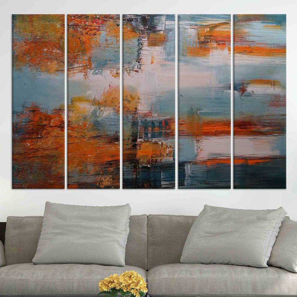 ผ้าใบพิมพ์ลาย: ภาพวิวทิวทัศน์ฤดูใบไม้ร่วง ศิลปะติดผนังแบบนามธรรมสมัยใหม่ ชุดผ้าใบ 5 ชิ้น