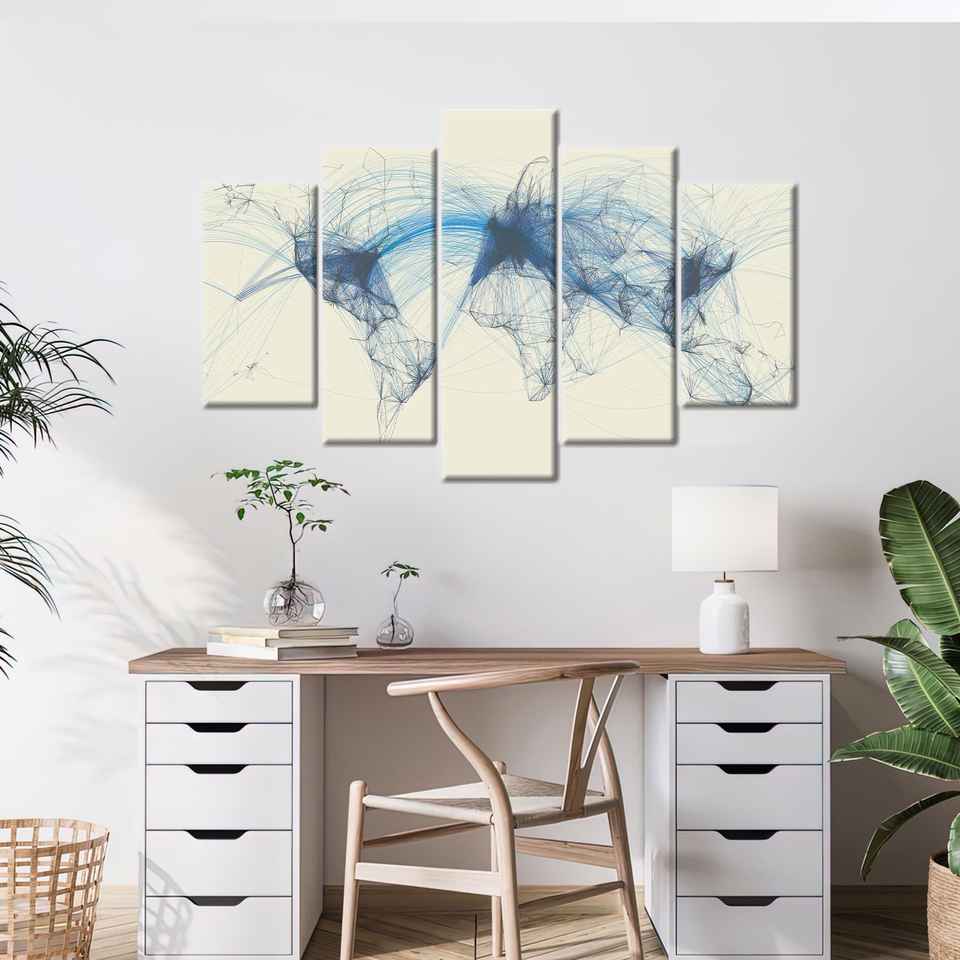 ผ้าใบพิมพ์ลาย: แผนที่การบินสำหรับตกแต่ง, ศิลปะการบินและจราจรทางอากาศ, ชุด 5 ชิ้น: ภาพพิมพ์แบบห่อขอบ