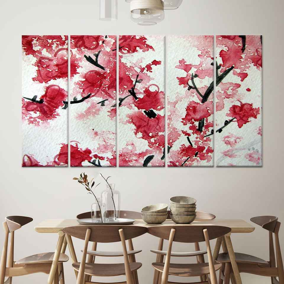 ผ้าใบพิมพ์ลาย: ภาพศิลปะติดผนังลายดอกซากุระ, ภาพทิวทัศน์ดอกไม้ญี่ปุ่น, ผ้าใบพิมพ์ลาย 5 ชิ้น