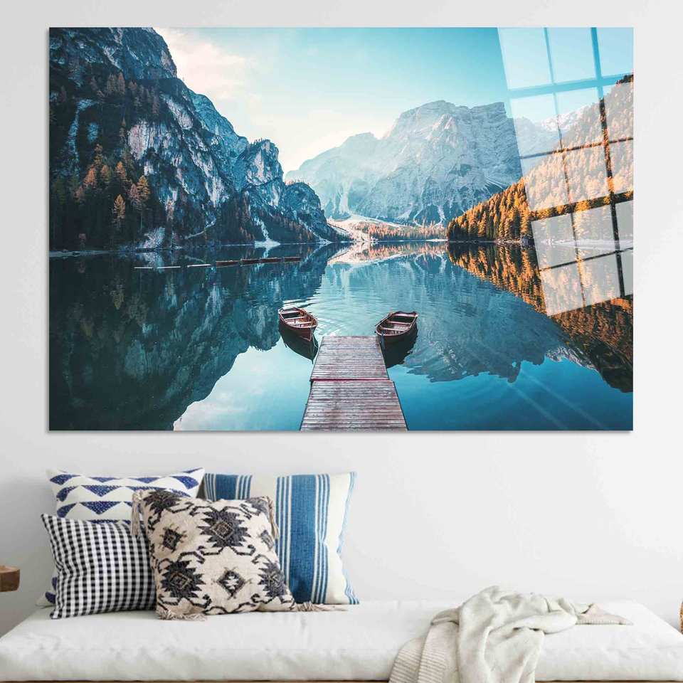 ภาพพิมพ์บนผ้าใบ: ศิลปะภาพทิวทัศน์ภูเขาโดโลไมต์, ของตกแต่งผนัง, ศิลปะบนกระจกนิรภัย