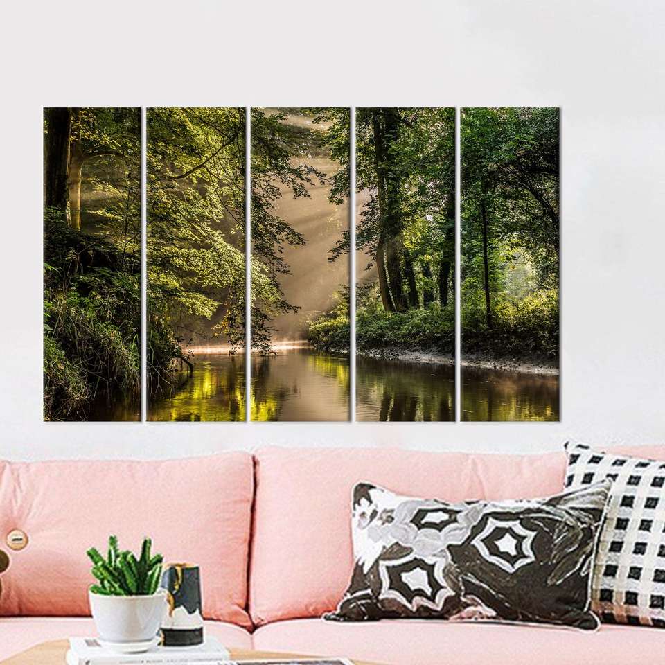 ภาพพิมพ์บนผ้าใบ: ภาพศิลปะติดผนังลายแม่น้ำในป่า งานศิลปะสีเขียว,5P:Gallery Wrapped