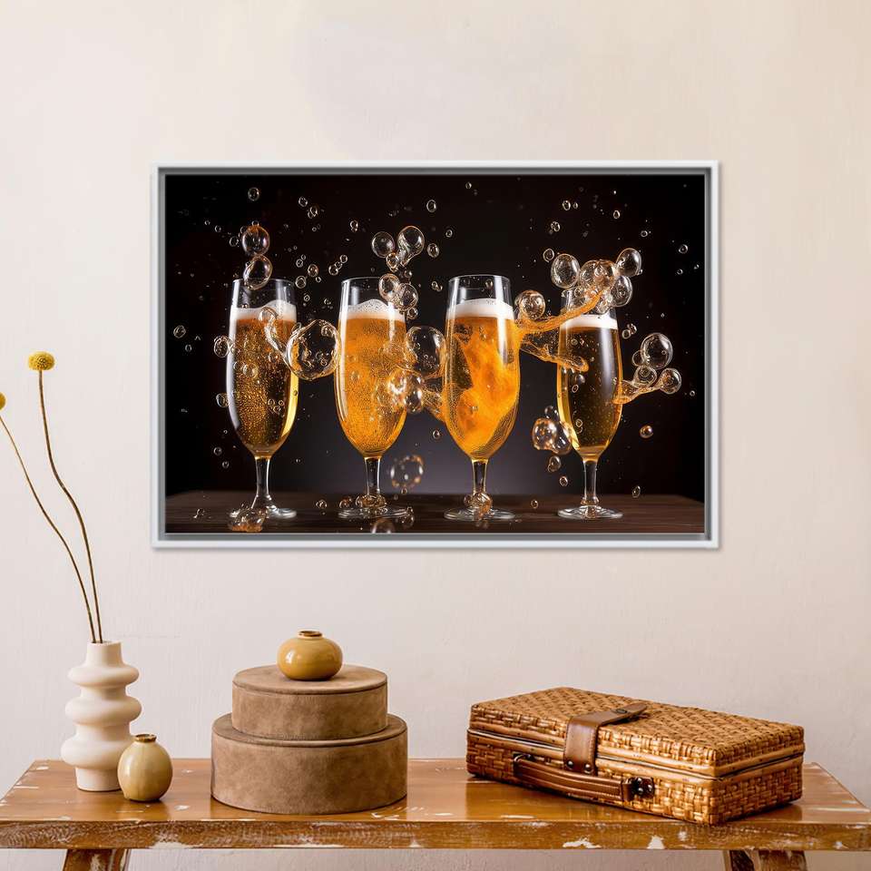 ผ้าใบพิมพ์ลาย: ของตกแต่งผนังผับสมัยใหม่ - ศิลปะแชมเปญและเบียร์ ผ้าใบกรอบสีขาว