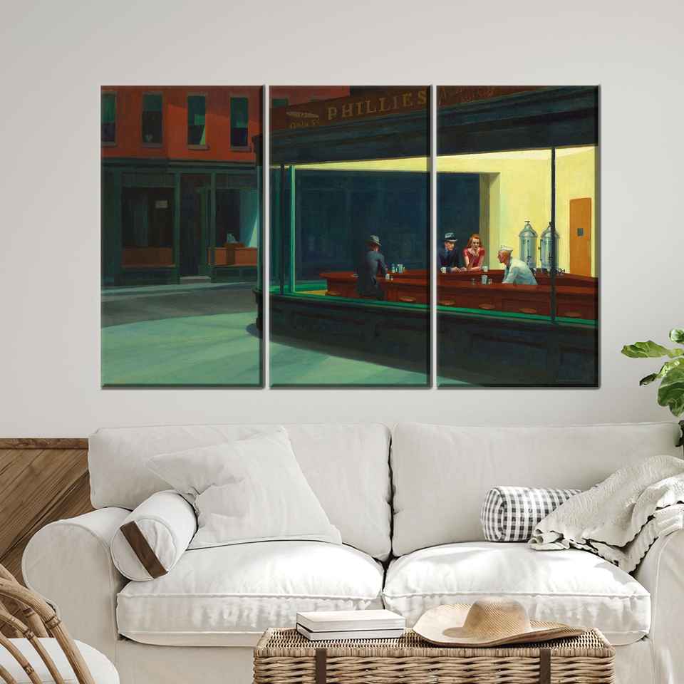 ผ้าใบพิมพ์ลาย: ภาพศิลปะร้านอาหารไนท์ฮอว์กส์สำหรับการตกแต่งแบบคลาสสิก,3P: ห่อหุ้มอย่างดี