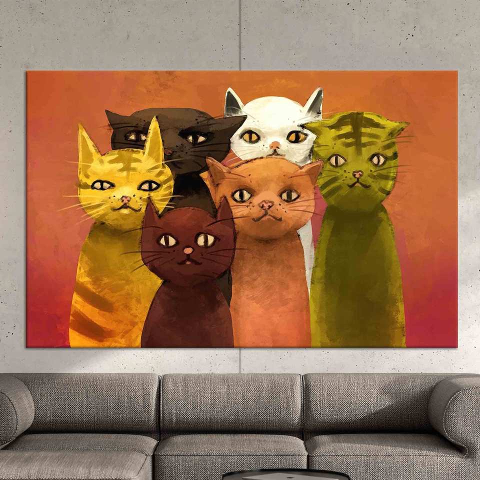 ภาพพิมพ์บนผ้าแคนวาส: ภาพวาดแมวหกตัวแบบสั่งทำพิเศษสำหรับคนรักแมว, ผ้าแคนวาสแบบห่อ