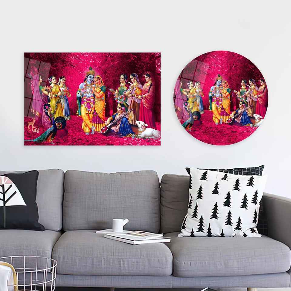 ภาพพิมพ์บนผ้าใบ: ของตกแต่งงานแต่งงานฮินดูรัฐะคริชนา, ศิลปะติดผนังสีชมพู, ศิลปะบนกระจกนิรภัย