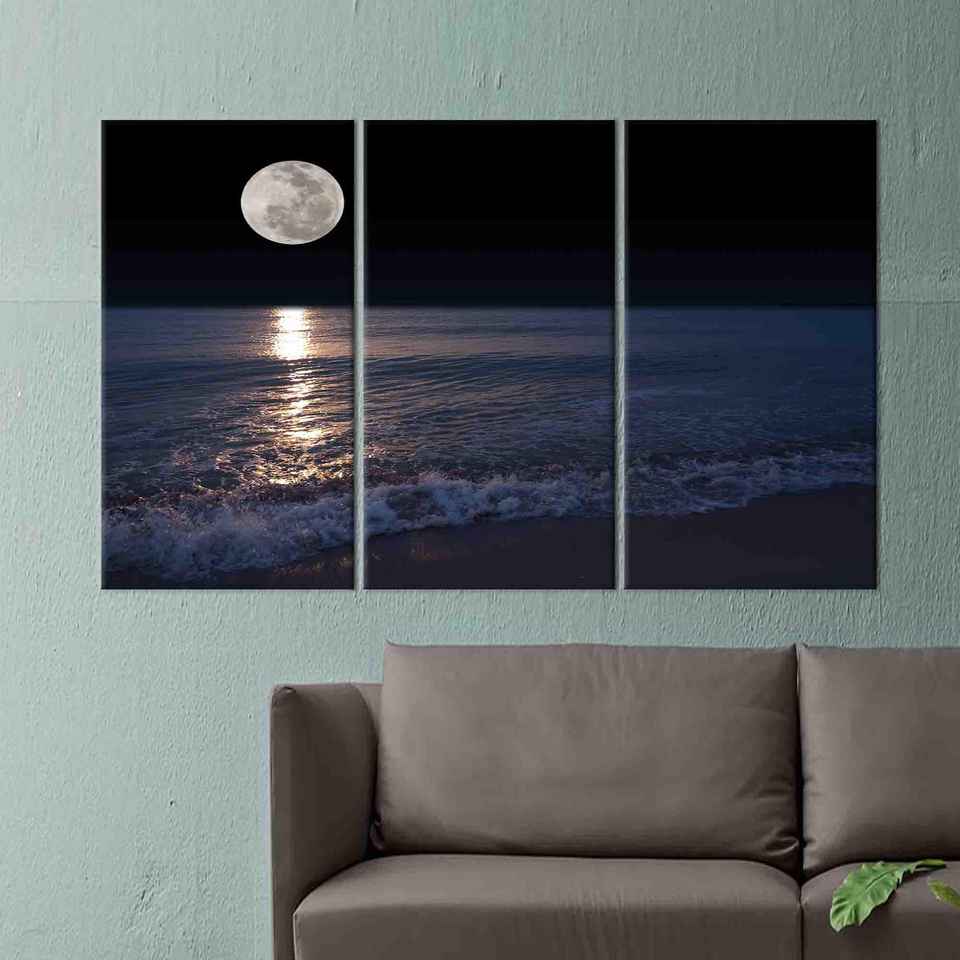 Printed Canvas: Serene Sea and Moon View Contemporary Decor,3P:Gallery Wrapped