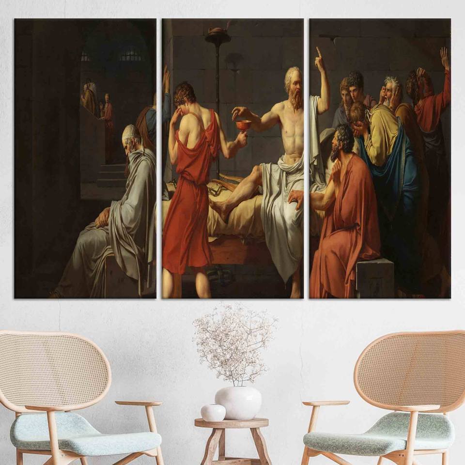 ภาพพิมพ์บนผ้าใบ: ความตายของโสกราตีสโดยหลุยส์ เดวิด - ของตกแต่งบ้านสุดหรู ชุดผ้าใบ 3 ชิ้น