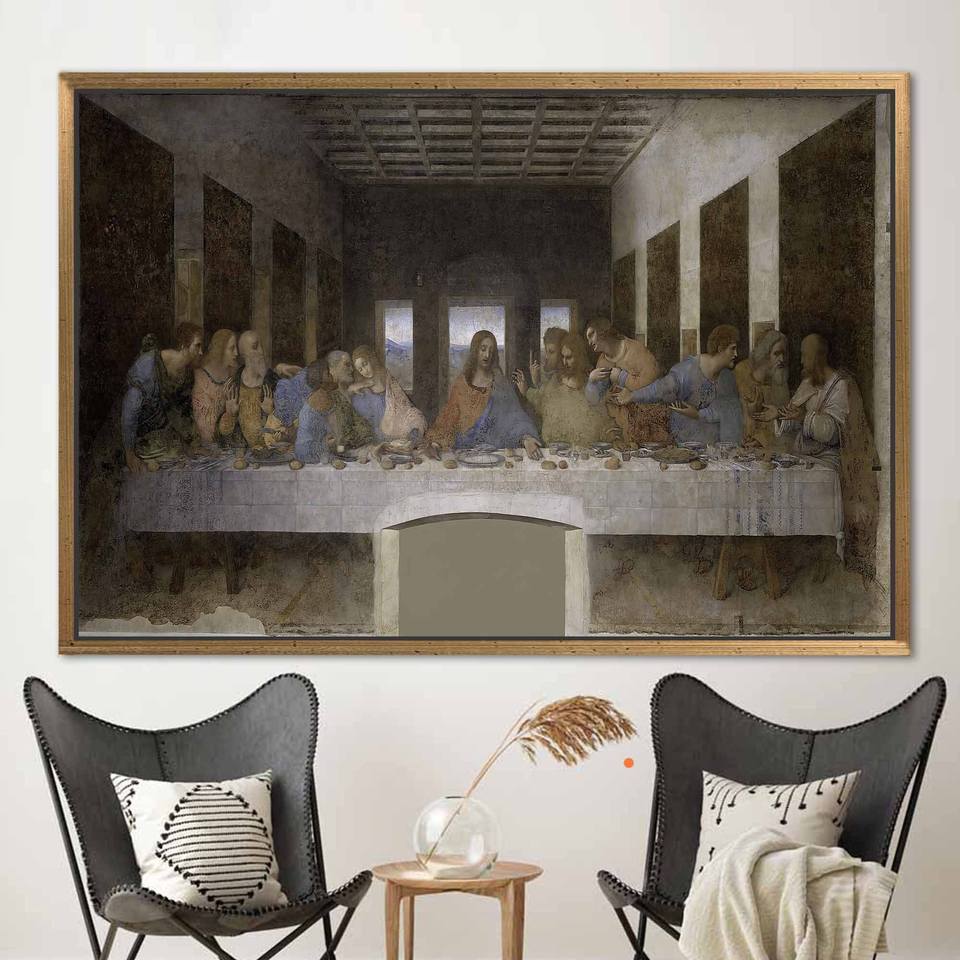 ภาพพิมพ์บนผ้าใบ: ภาพจำลองงานศิลป์ "ค่ำคืนวันพระกระยาหาร" โดยดาวินชี,1P:กรอบสีทอง