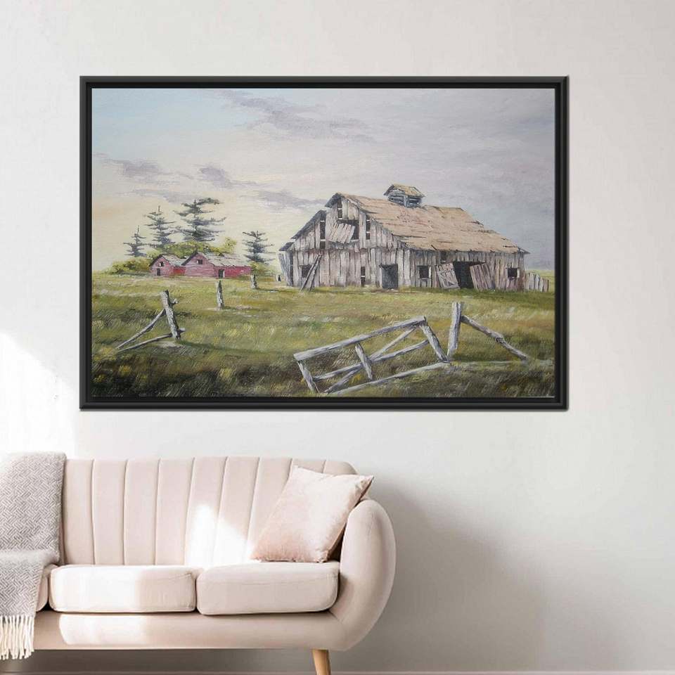 ภาพพิมพ์บนผ้าใบสำหรับตกแต่งผนัง: ภาพทิวทัศน์ฟาร์มสไตล์ชนบทและของตกแต่งสไตล์โบโฮ,1P:กรอบสีดำ