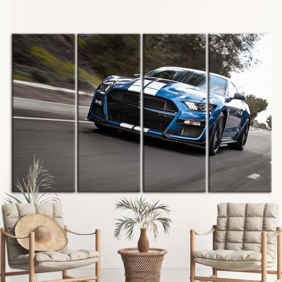 ภาพพิมพ์บนผ้าใบสำหรับตกแต่งรถยนต์: ของตกแต่งฟอร์ดมัสแตงสีน้ำเงินสุดหรู,4P: ห่อหุ้มอย่างดี
