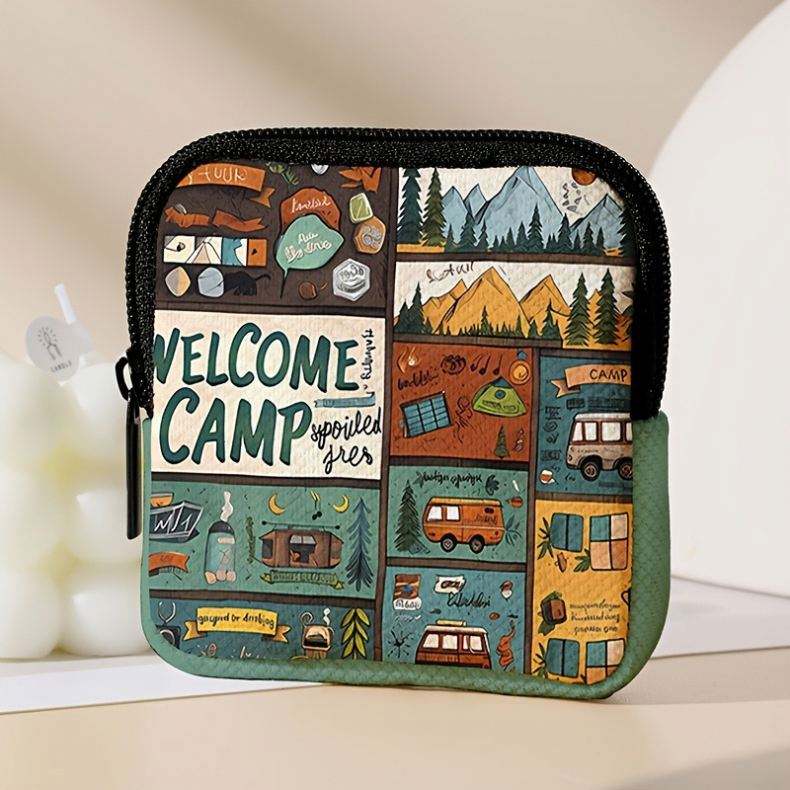 กระเป๋าใส่เหรียญพิมพ์ลายหนังเทียมกันน้ำหนังเทียมซิปกระเป๋าเก็บของมัลติฟังก์ชั่นมินิหูฟังแบบพกพา