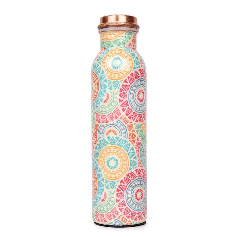 ขวดน้ำทองแดงพิมพ์ลาย ป้องกันการรั่วซึม 1000 มล. เป็นมิตรกับสิ่งแวดล้อม ปลอดสาร BPA ดีต่อสุขภาพแบบอายุรเวท เหมาะสำหรับใช้ที่บ้าน ฟิตเนส ออฟฟิศ แคมป์ปิ้ง ท่องเที่ยว ปรับแต่งได้
