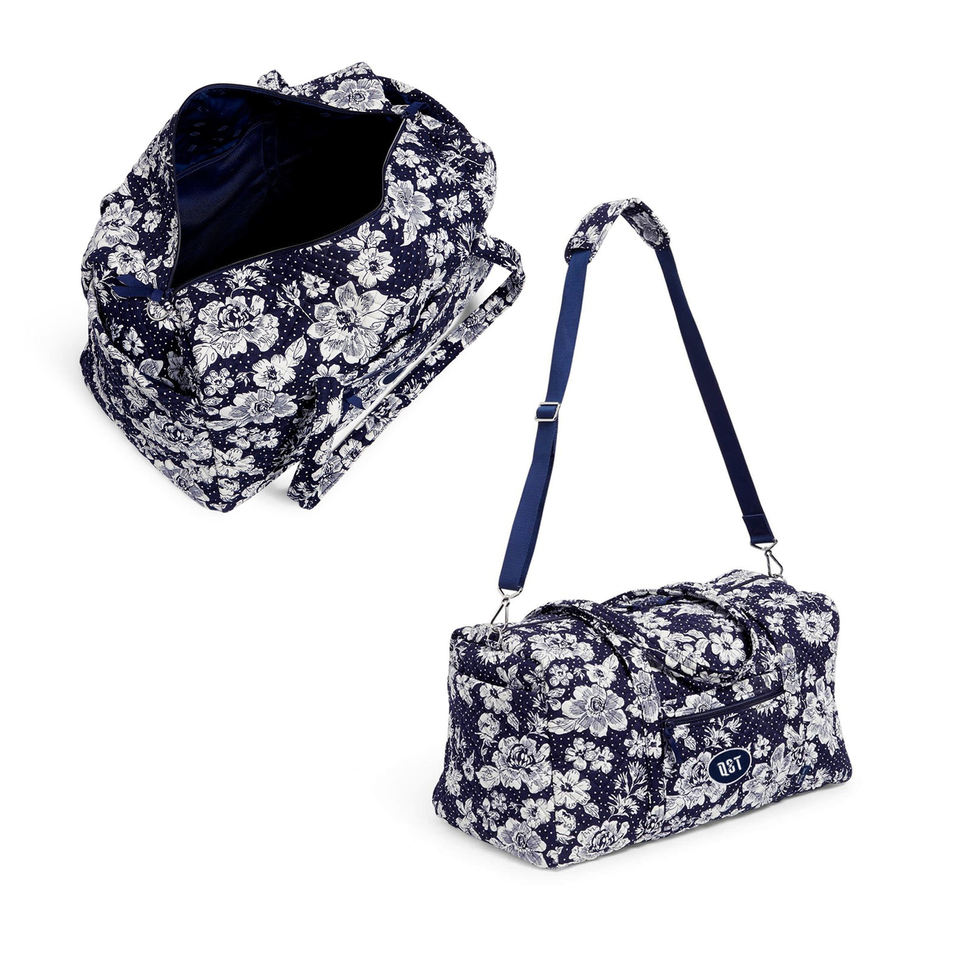 กระเป๋าทรงดัฟเฟิลกระเป๋าพิมพ์ลายดอกไม้น้ำหนักเบาปรับได้มีสายสะพายไหล่ผ้าซักได้สำหรับผู้หญิง