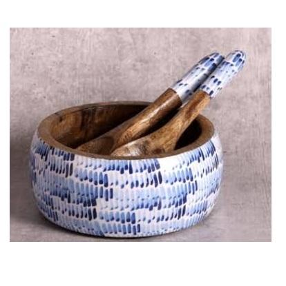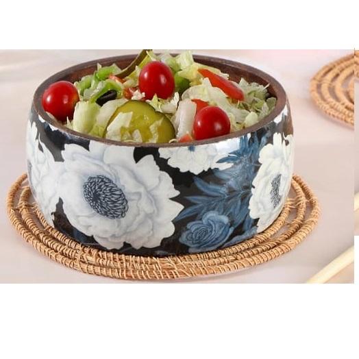 ชามเคลือบลายพิมพ์สำหรับใส่ผลไม้และผัก ใช้สำหรับผสมและเสิร์ฟ ชามไม้สำหรับใส่สลัดและผลไม้