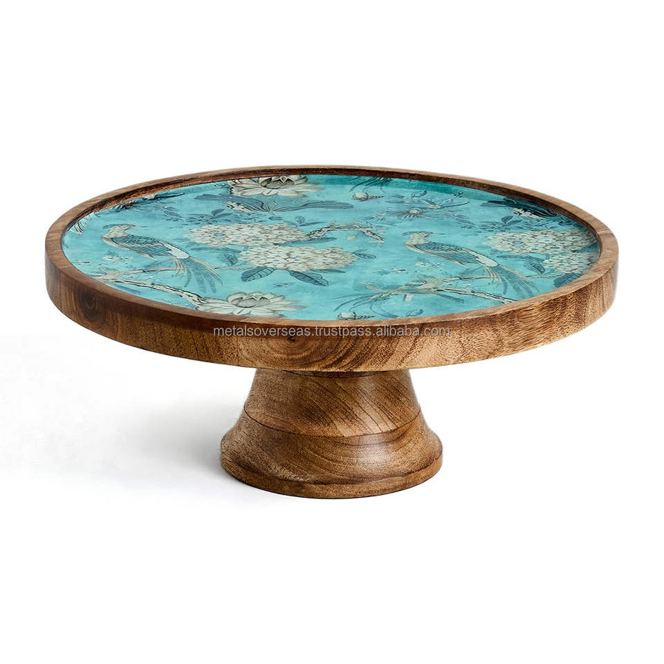 แท่นวางเค้กไม้มะม่วงงานฝีมือพร้อมแผ่นประดับดอกไม้เทอร์ควอยซ์สำหรับงานแต่งงานและงานอีเวนต์