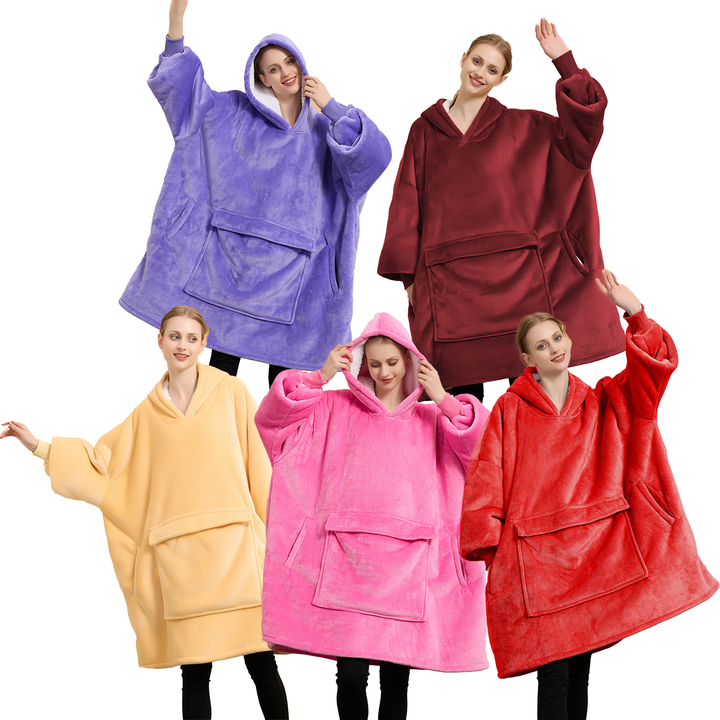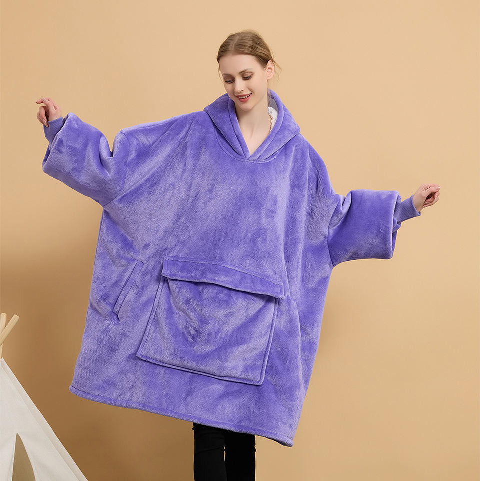 ผ้าห่มฮู้ดดี้แบบสวมใส่ได้ ลายพิมพ์ ดีไซน์โอเวอร์ไซส์ ผ้าเชอร์ปาฟลีซ หนานุ่ม 230gsm รุ่นคารอลีน