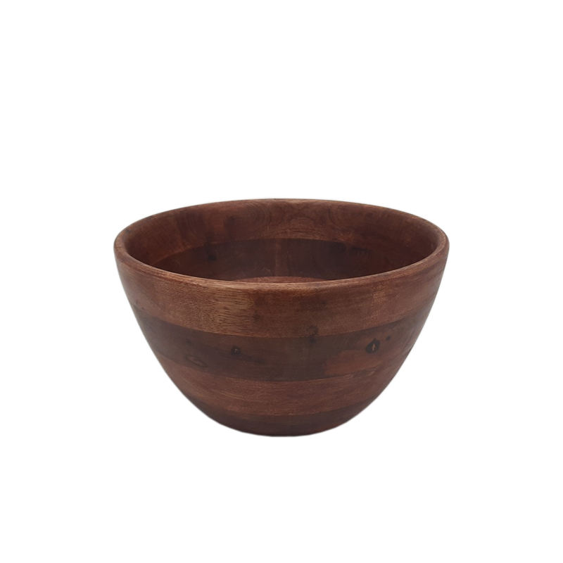 ชามเสิร์ฟอาหารไม้ทรงกลมพิมพ์ลายทำจากธรรมชาติสำหรับโต๊ะอาหารในครัวชามเสิร์ฟอาหารทำด้วยมือ
