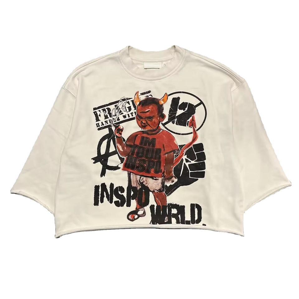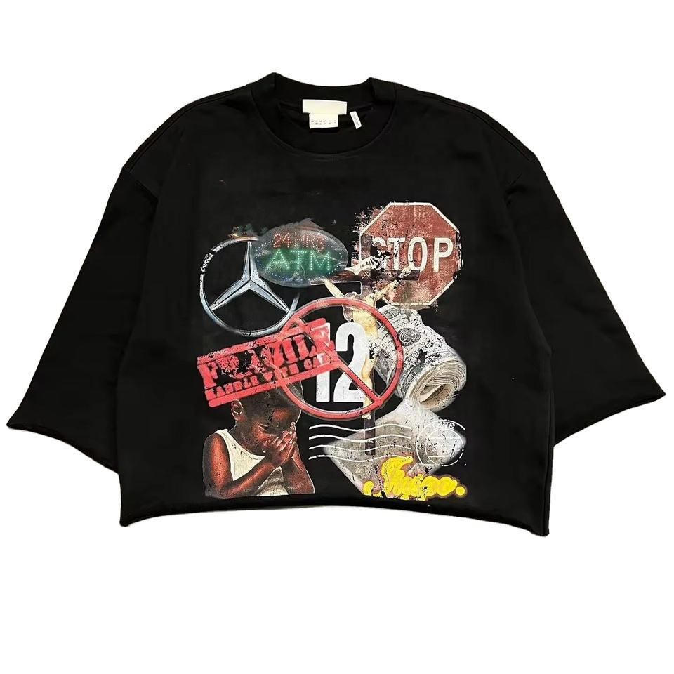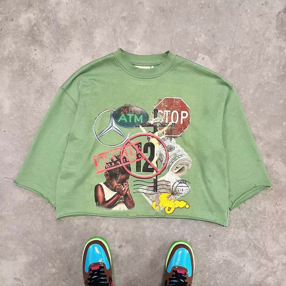 เสื้อยืดผู้ชายพิมพ์ลายกราฟิกเสื้อยืดแขนครึ่ง100% ผ้าฝ้ายเฮฟวี่เวทเสื้อยืดผู้ชายตัดขอบโค้งดิบ