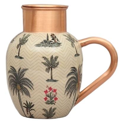 เหยือกน้ำทองแดงทำด้วยมือพิมพ์ลายพร้อมต้นปาล์มของหวานเคลือบใช้สำหรับบ้านและห้องครัวเหยือกน้ำดื่ม
