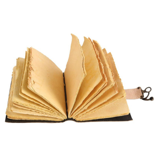 สมุดบันทึกปกหนังทำมือพิมพ์ลายกริโมแวร์ ลูน่า โมธ ดีไซน์ขอบกระดาษแบบดิบ ลายดอกไม้ ธีมการอ่าน - ตรุษจีน