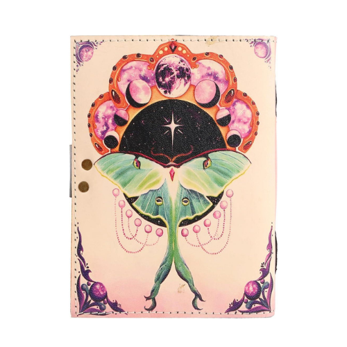 Printed Luna Moth Leather Journal Book of Spells hardcover diary