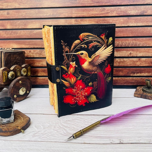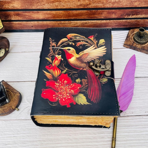 Printed Hummingbird Vintage Leather Journal Handmade Prayer Notebook