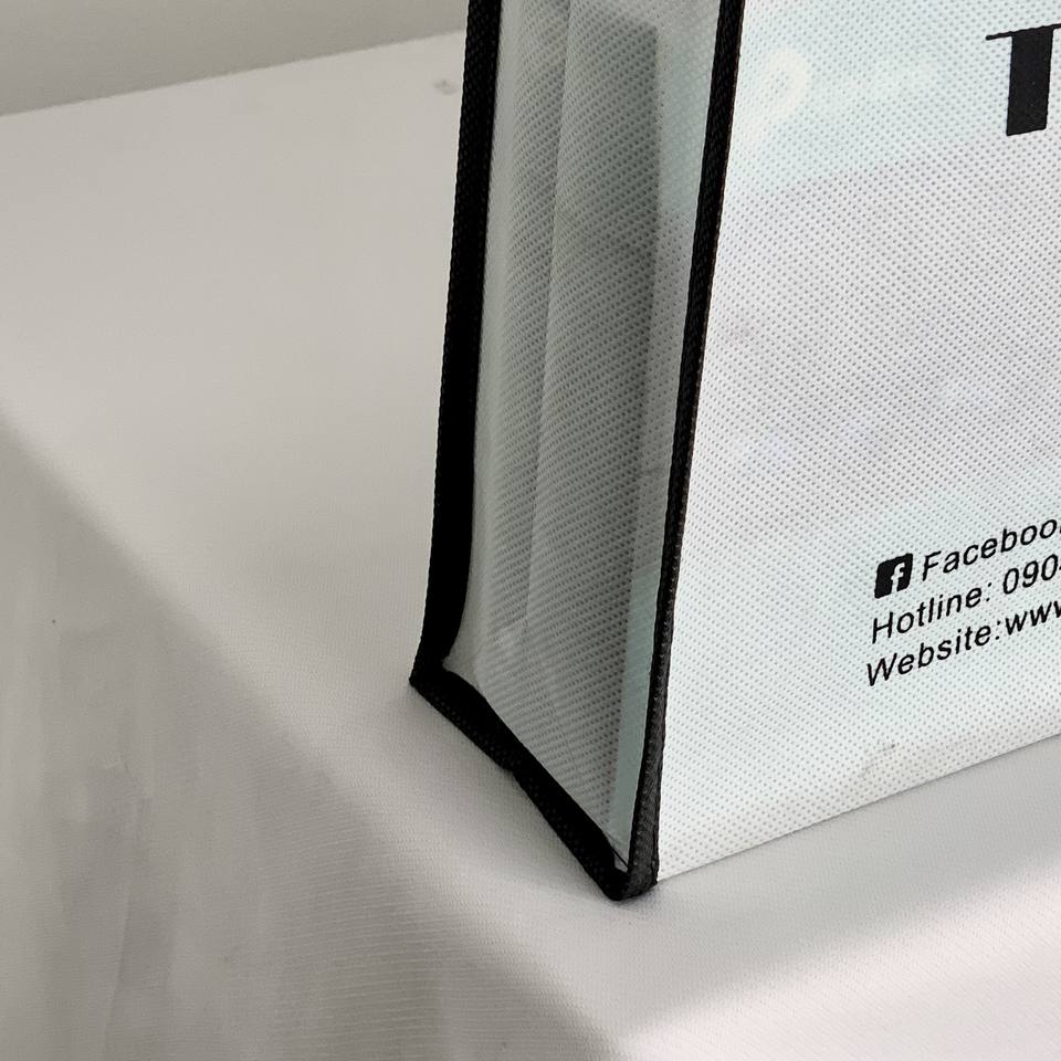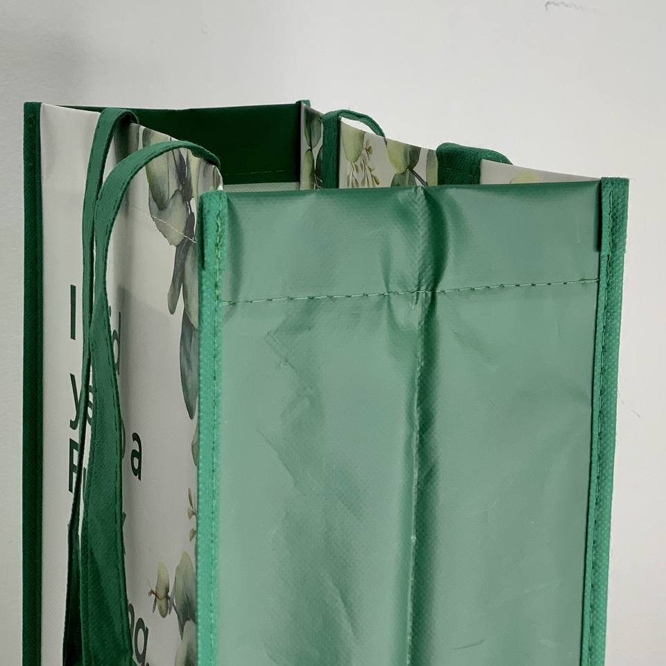 ถุงหิ้วโพลีโพรพิลีนเคลือบพิมพ์ลาย PP แบบไม่มีหูหิ้ว ถุงทอแบบใหม่บรรจุในกล่อง ผลิตในเวียดนาม