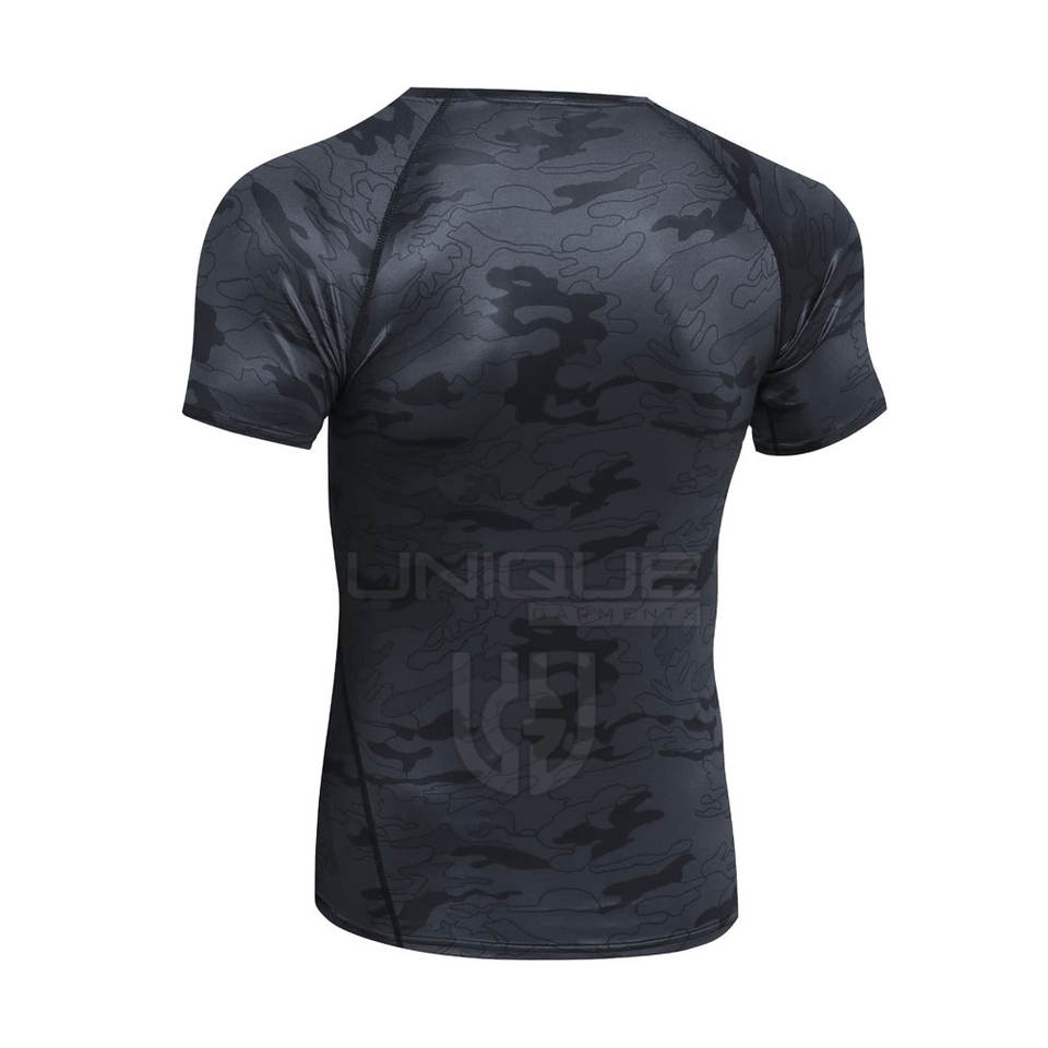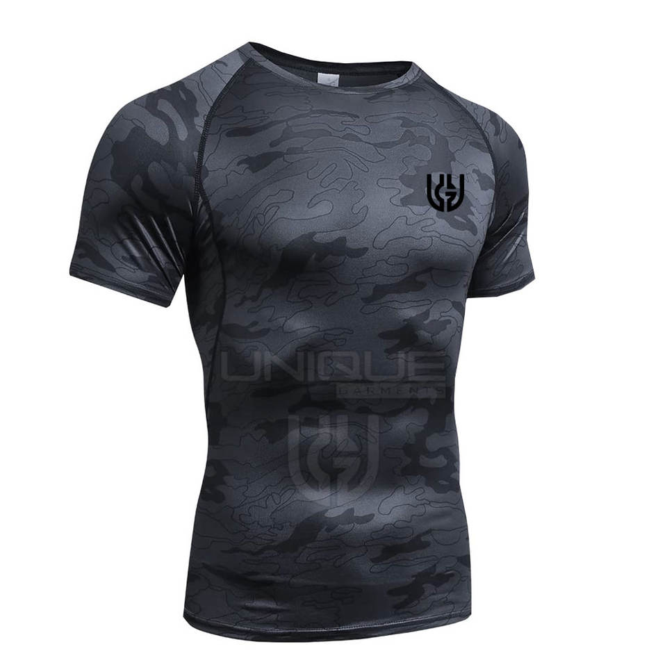เสื้อแรชเม็ทแขนสั้นสำหรับผู้ชายเสื้อใส่เล่นยิมผ้ายืดพิมพ์โลโก้