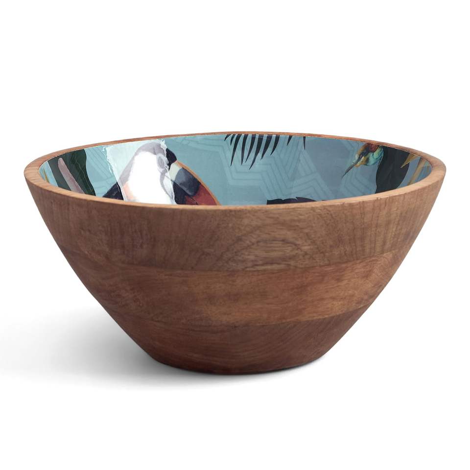 ชามไม้มะม่วงพิมพ์ลาย ชามไม้กลมทำมือ เกรดสำหรับอาหาร เหมาะสำหรับก๋วยเตี๋ยว ซุป แกง ของว่าง เคลือบผิวทัวร์มาลีน