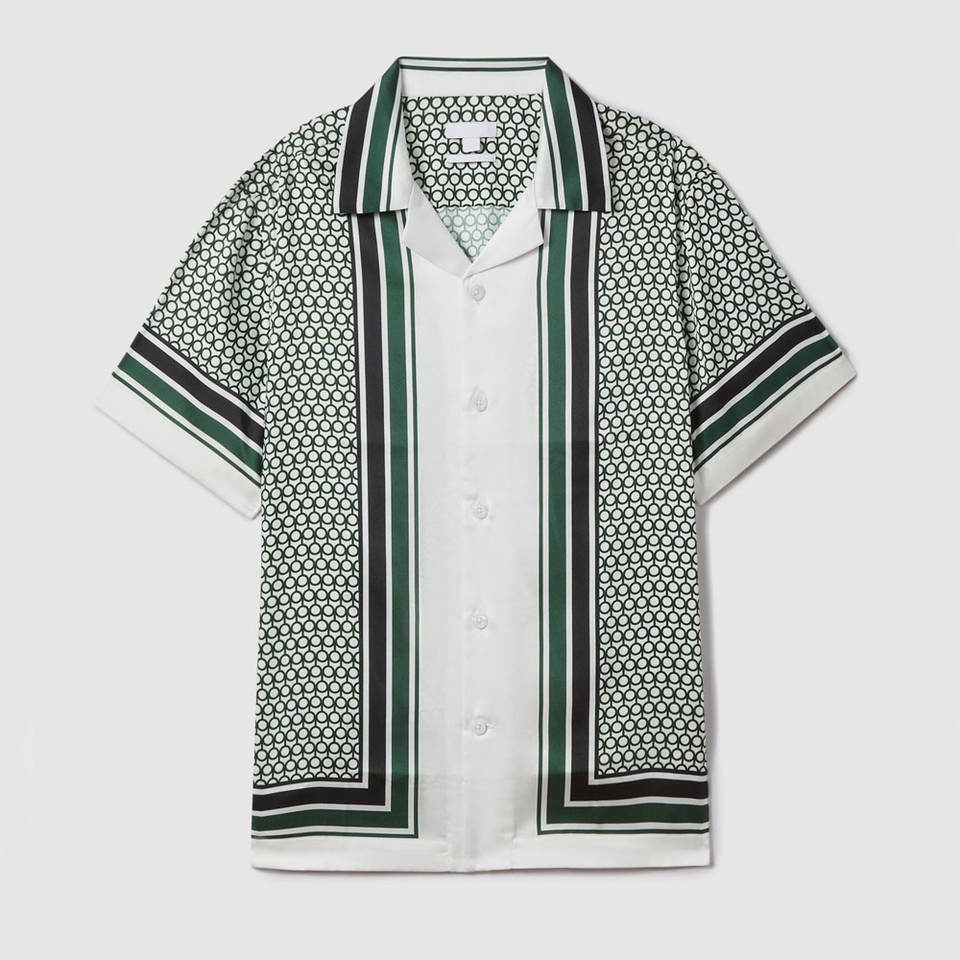 เสื้อพิมพ์ลายแขนสั้นผู้ชายคอคิวบา/เสื้อคอปกคิวบาทำจากวัสดุโพลีเอสเตอร์100%