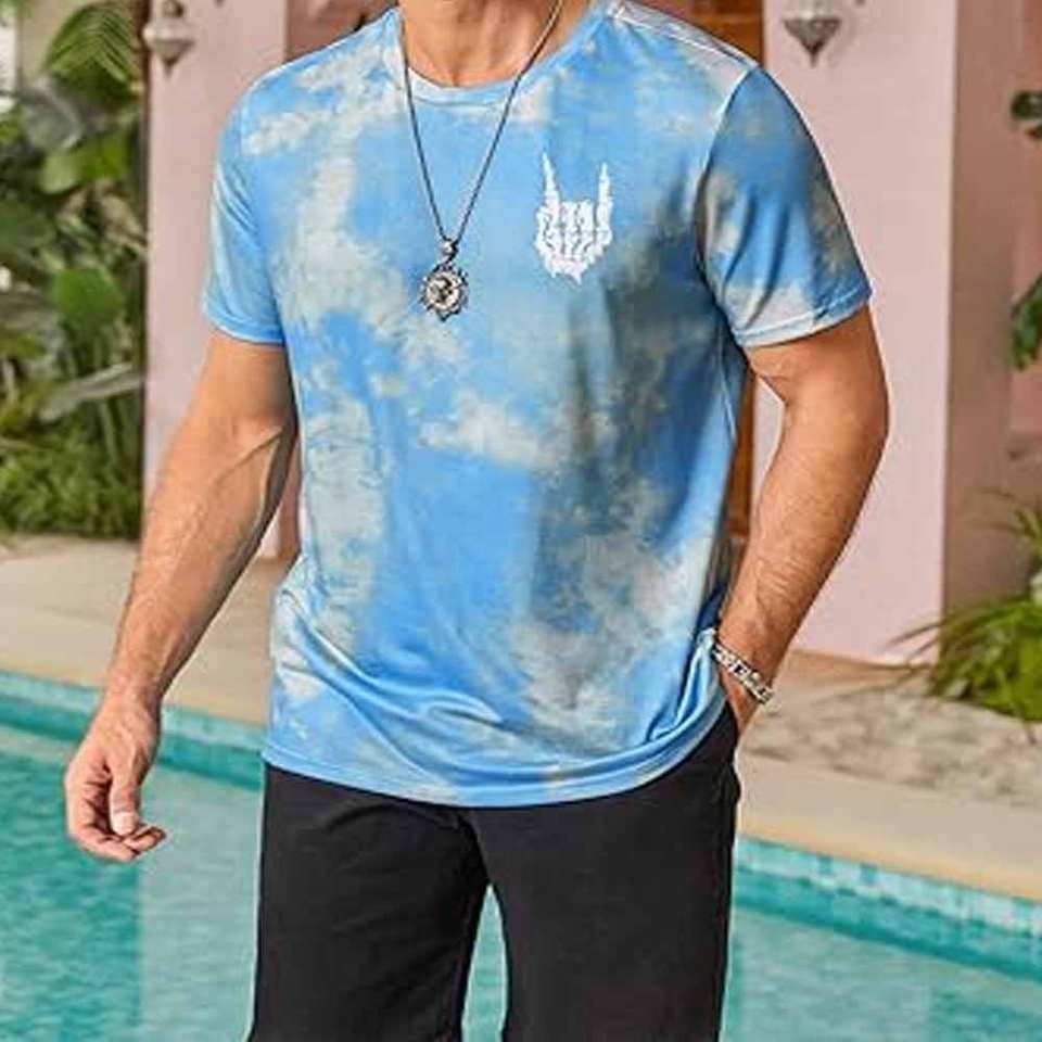 เสื้อยืดผู้ชายพิมพ์ลาย คอกลม ผ้าฝ้าย 100% ระบายอากาศได้ดี น้ำหนักผ้าปานกลาง ความยาวปกติ พิมพ์ลายดิจิทัล