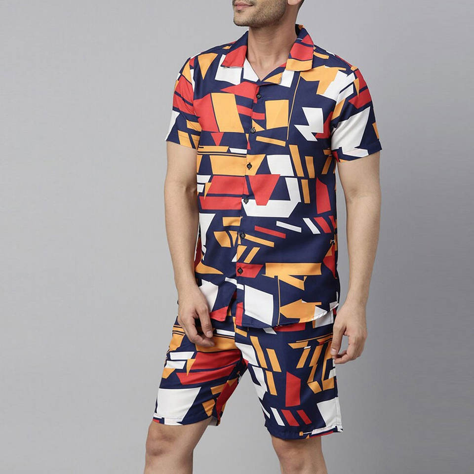 "ชุดพิมพ์ลายมินิมอลสำหรับผู้ชายนักออกแบบหลายโทนดูในผ้าระบายอากาศ"