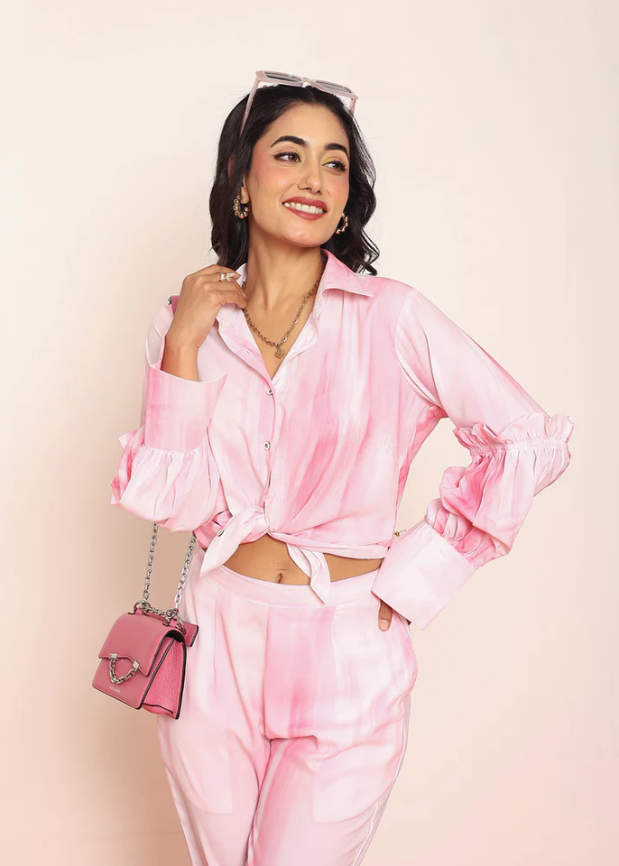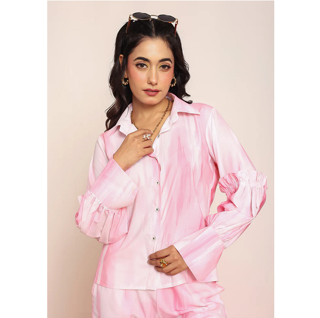 เสื้อเชิ้ตพิมพ์ลายสีชมพู เสื้อลำลองผู้หญิง เสื้อแฟชั่นฤดูร้อน เสื้อเบลาส์อินเทรนด์ สไตล์เก๋ไก๋ เสื้อเชิ้ตใส่สบายสำหรับออฟฟิศ เสื้อเชิ้ตสวยหรู