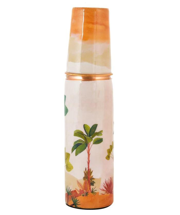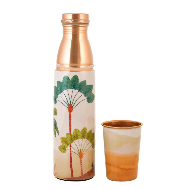 ขวดน้ำทองแดงแท้พิมพ์ลาย 950 มล. พร้อมแก้วน้ำ 250 มล. ชุดขวดน้ำและแก้วน้ำดีไซน์เนอร์สำหรับใช้ในบ้านและสำนักงาน