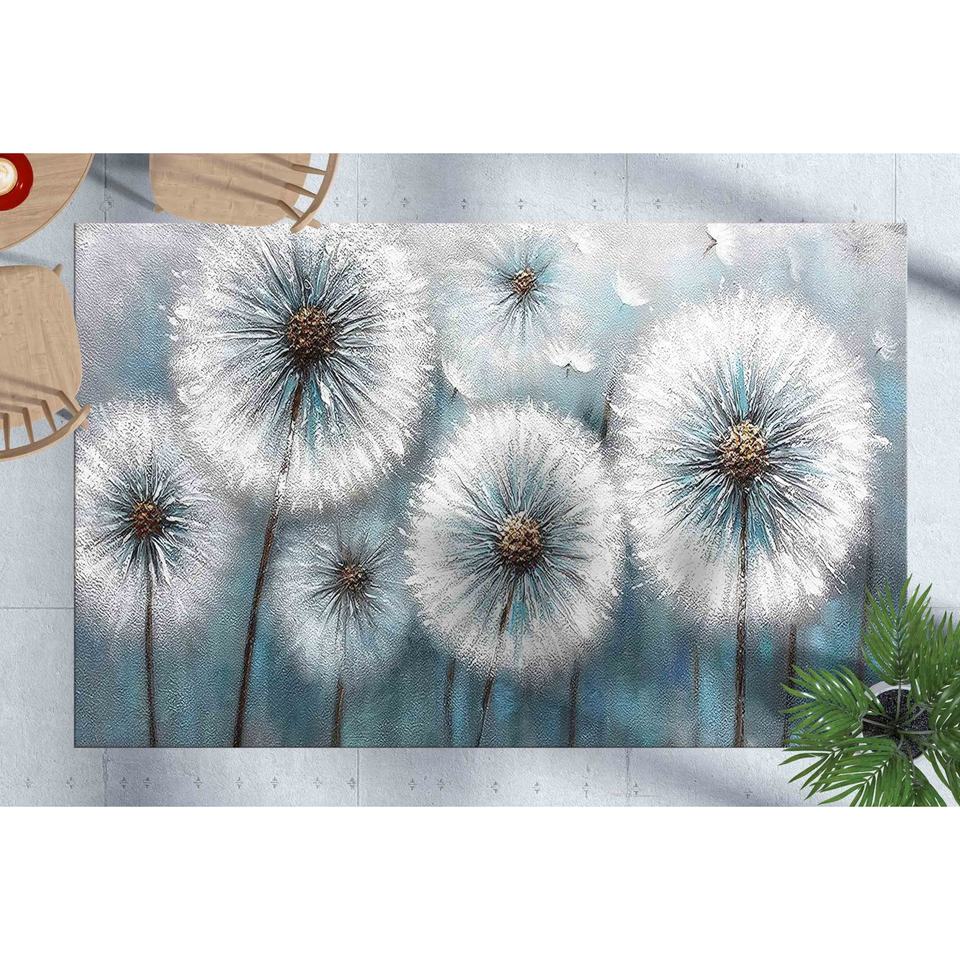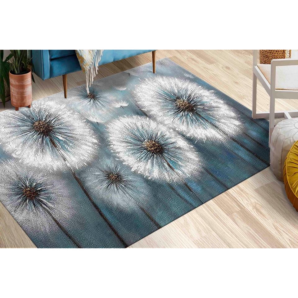พรมพิมพ์ลาย - ลายดอกแดนดิไลออนทันสมัย กันลื่น ตกแต่งสไตล์พฤกษศาสตร์ พร้อมพรมขนนุ่ม