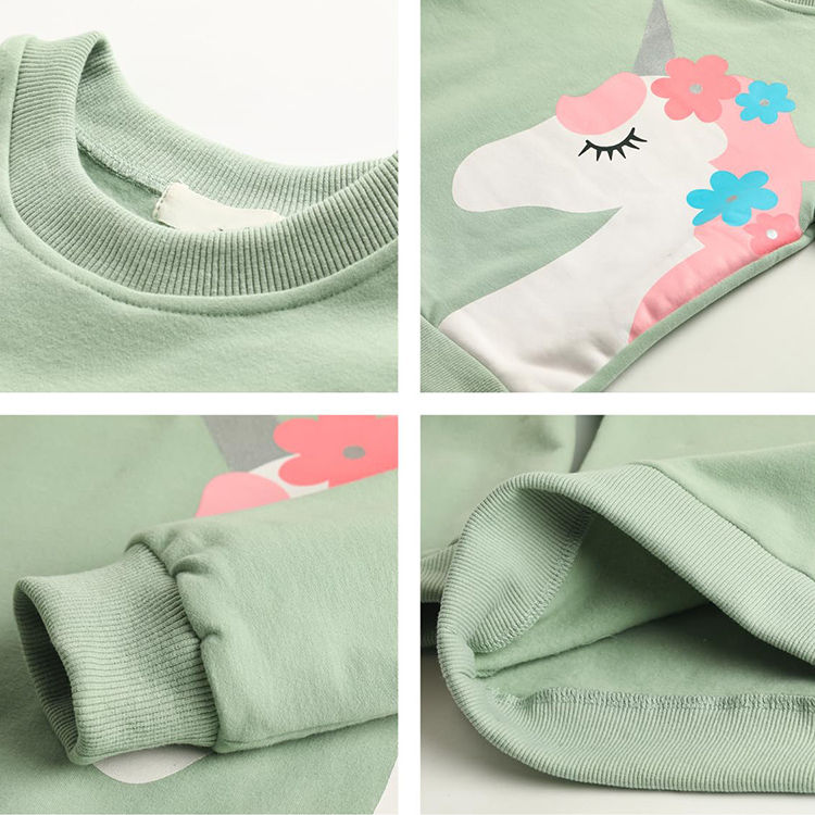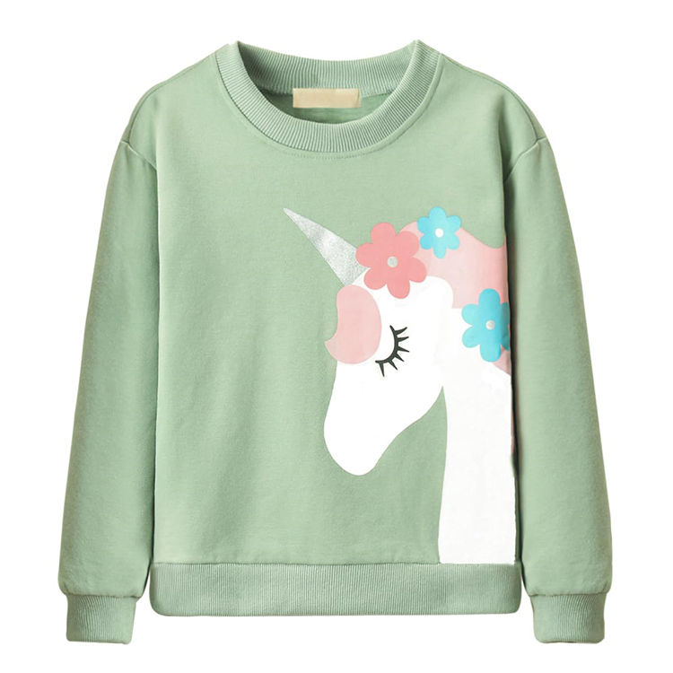 เสื้อสเวตเชิ้ตสีพื้นพิมพ์ลายแขนยาวสำหรับเด็กผู้หญิง เสื้อผ้าเด็กขายส่ง เสื้อสเวตเชิ้ตเด็ก